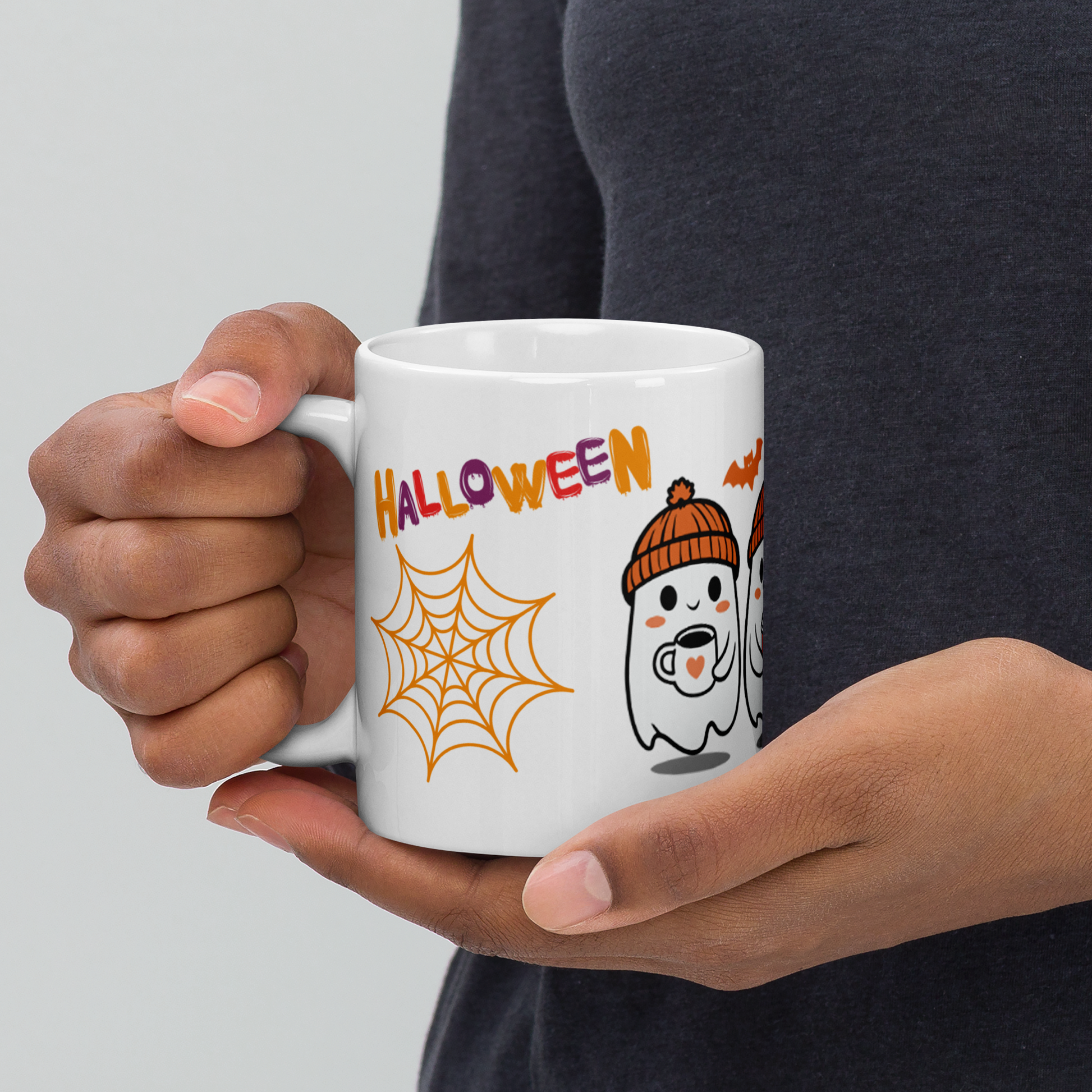 Imaginez-vous savourant votre café matinal avec ces petits fantômes souriants qui vous accompagnent ! Ce mug apporte une touche de fun et de mystère à votre quotidien, que ce soit pour Halloween ou pour égayer vos journées.